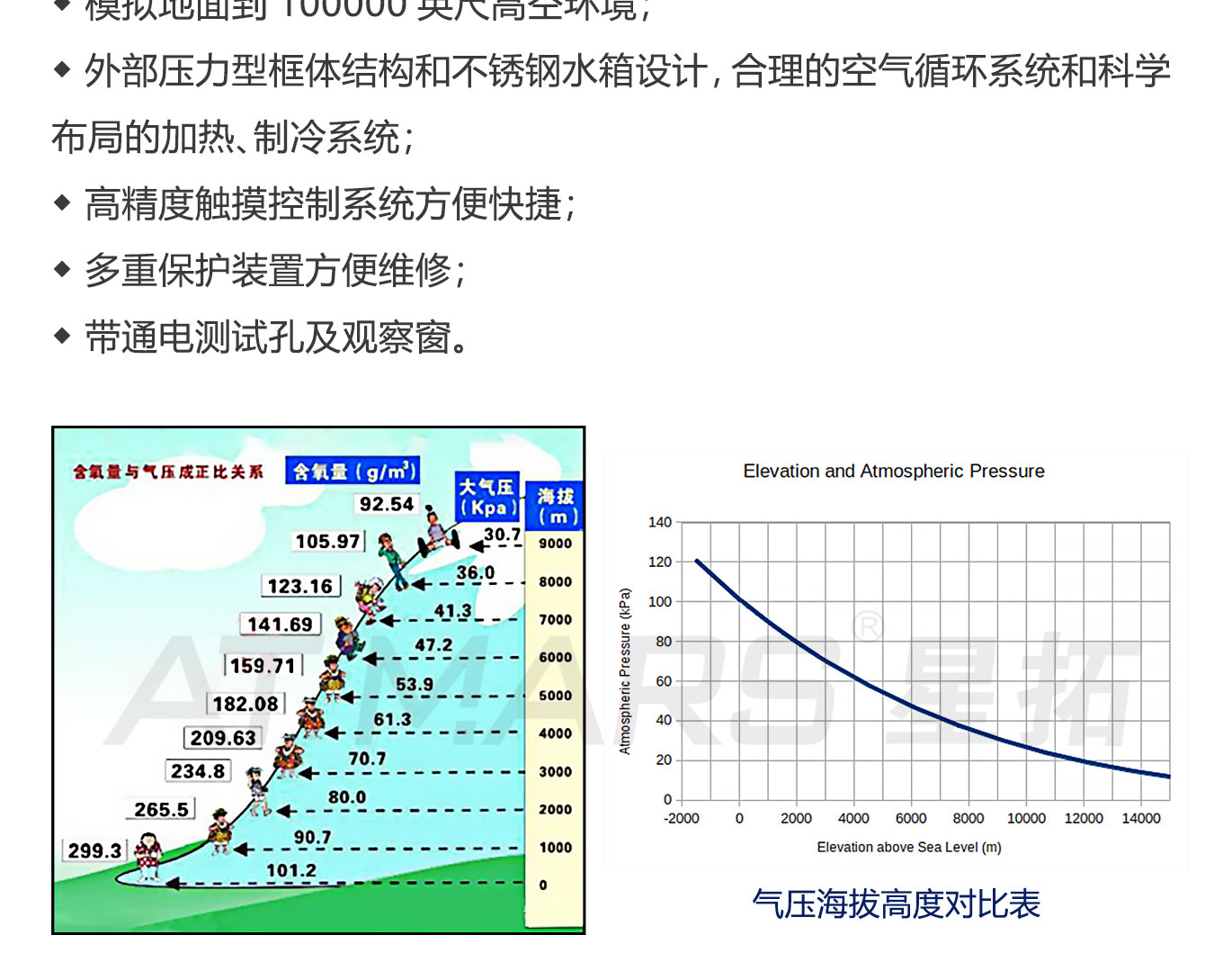 压力范围:常压~50kPa (对应海拔高度约5000米)