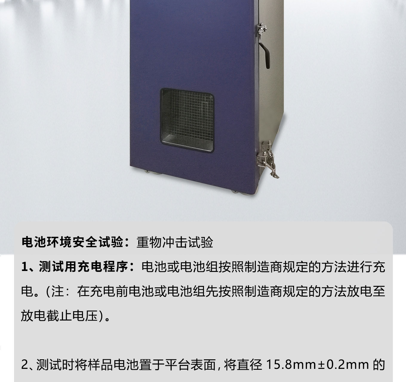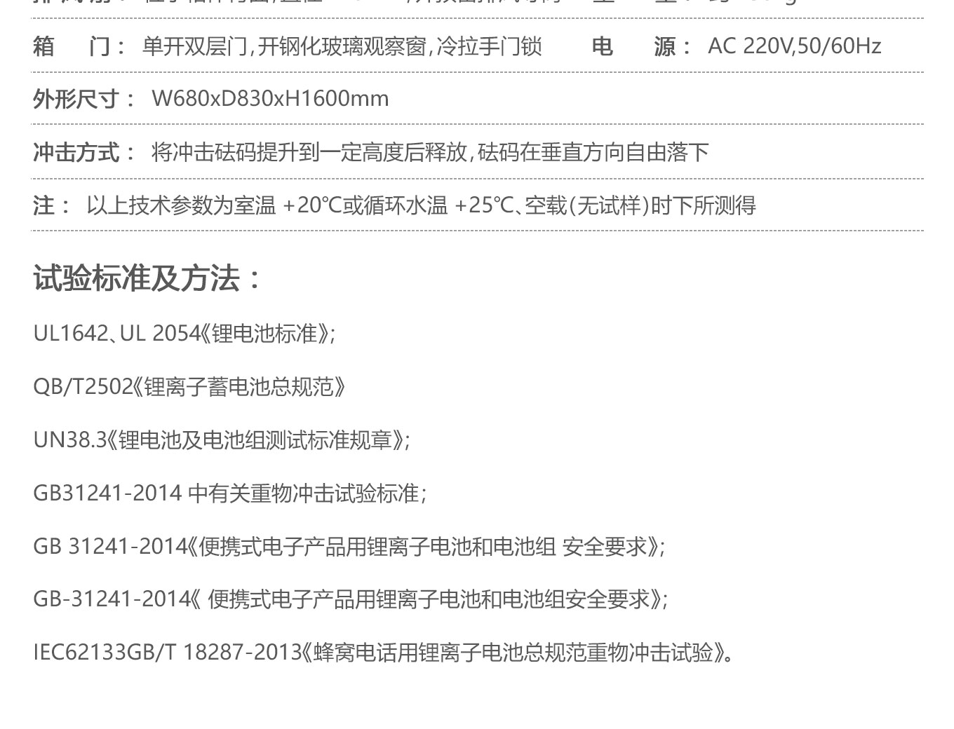 查看更多锂电池系列糖心视频下载官网,糖心VLOG在线观看官网专业提供满足GB31241-2014试验标准整套设备,GB31485-2015整套设备,GB31467.3-2015整套设备,主要为汽车动力电池,锂离子电池和电池组检测漏液、起火、爆炸、过热等情况。
