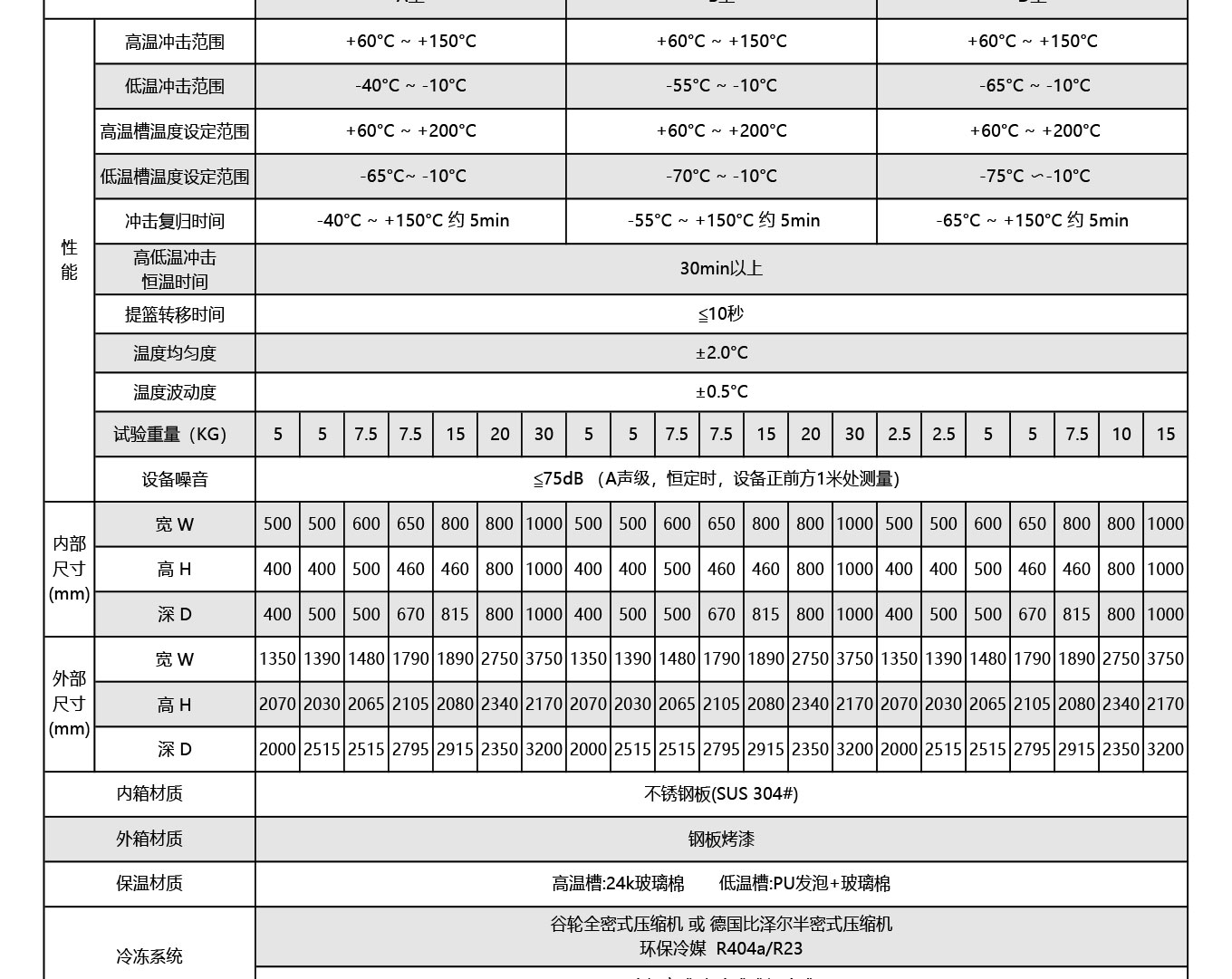 温度冲击范围:-65℃(最低)至+150℃