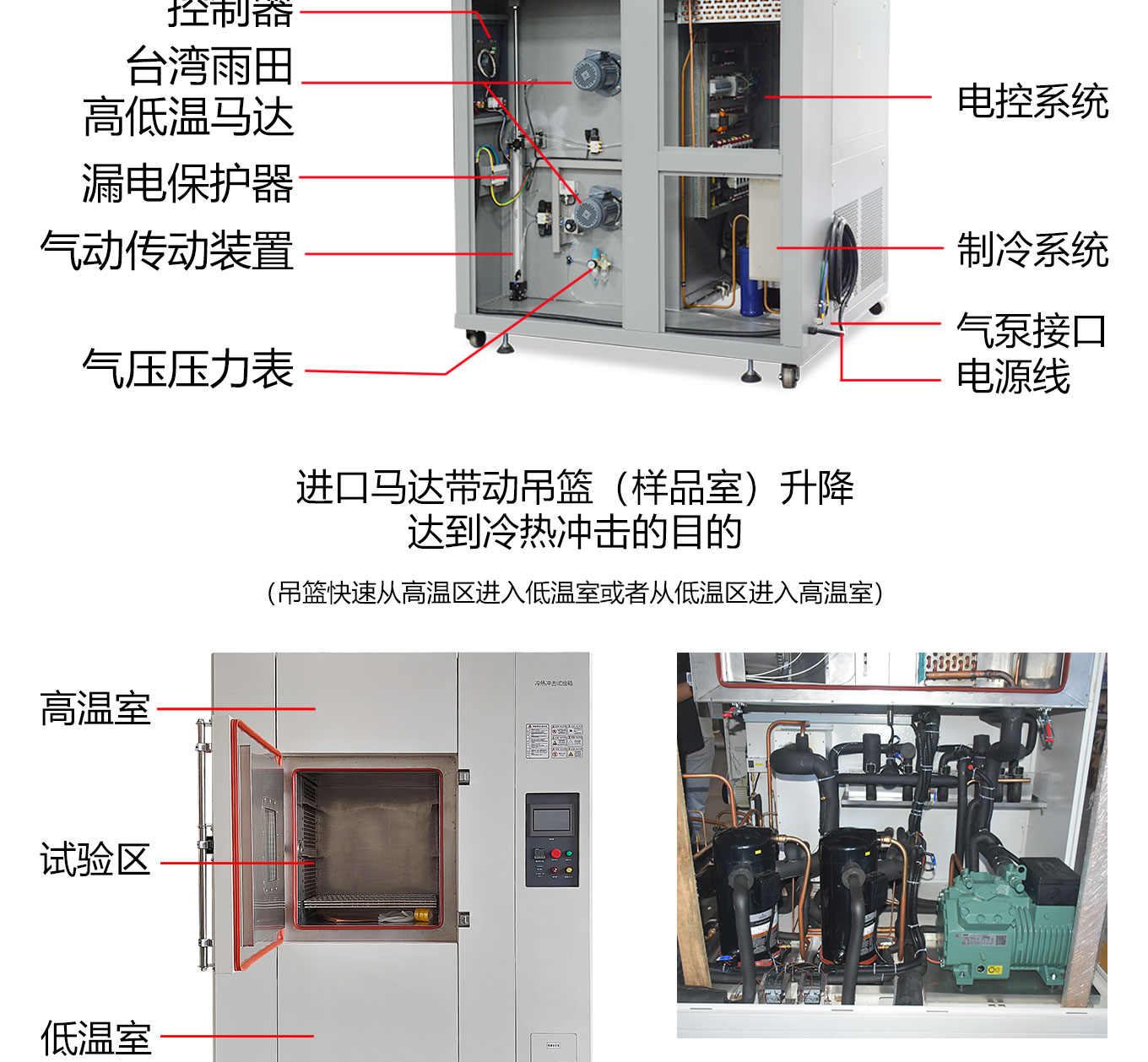 四厢式冷热冲击糖心视频下载官网为航天、航空、电子、汽车、电池等产品与质检所、研究院、高等院校等试验单位,提供虚空间模拟真实环境,对产品检验、研发成果的验证,糖心视频下载官网是缩短开发周期,提升产品质量与可靠性不可缺的得力助手。