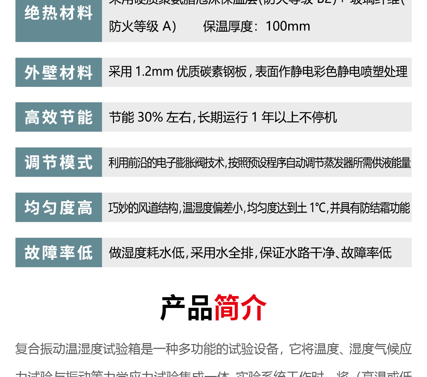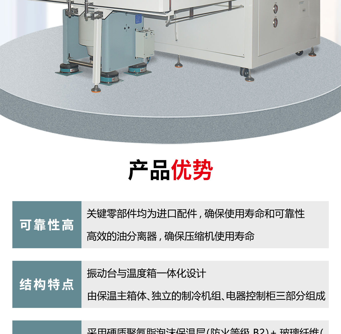 复合振动温湿度糖心视频下载官网是一种多功能的试验设备,它将温度、湿度气候应力试验与振动等力学应力试验集成一体。实验系统工作时,将(高温或低温、温度变化)应力、湿度应力、振动应力及电应力按照规定的组合方式和周期性空间,同时或分别施加到样品上与单一应力作用相比,具有环境模拟更真实、试验效率更高等优点。